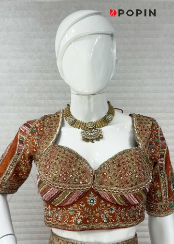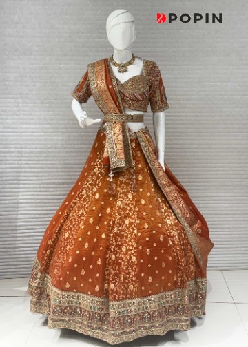 RUST ORANGE BANARASI CHANIYA CHOLI WITH EMBROIDERED BLOUSE