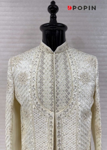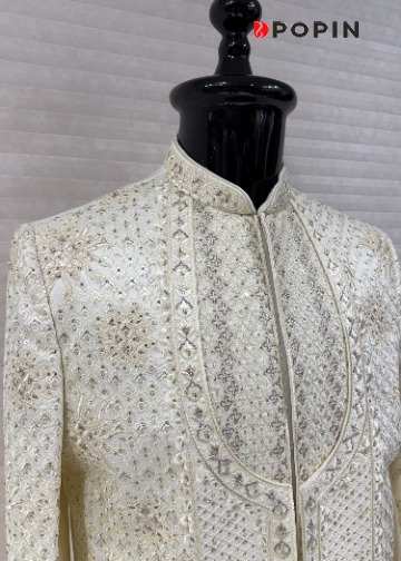 CREAM HEAVY EMBROIDERED INDO WESTERN SHERWANI